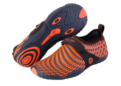 ・アッパー部はウェットスーツのようなピタッと密着する素材でできており、脱げにくい構造で、ハードな動きでも快適な履き心地です。